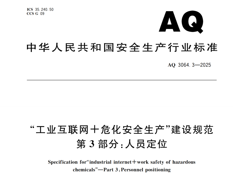 2026年1月4日,應急管理部正式發布《“工業互聯網+危化安全生產”建設規范 第3部分:人員定位》(AQ 3064.3-2025),并將于同年7月1日起強制執行。這一標準的出臺,是危化安全生產領域從“事后追溯”向“事前防控”轉型的關鍵舉措。