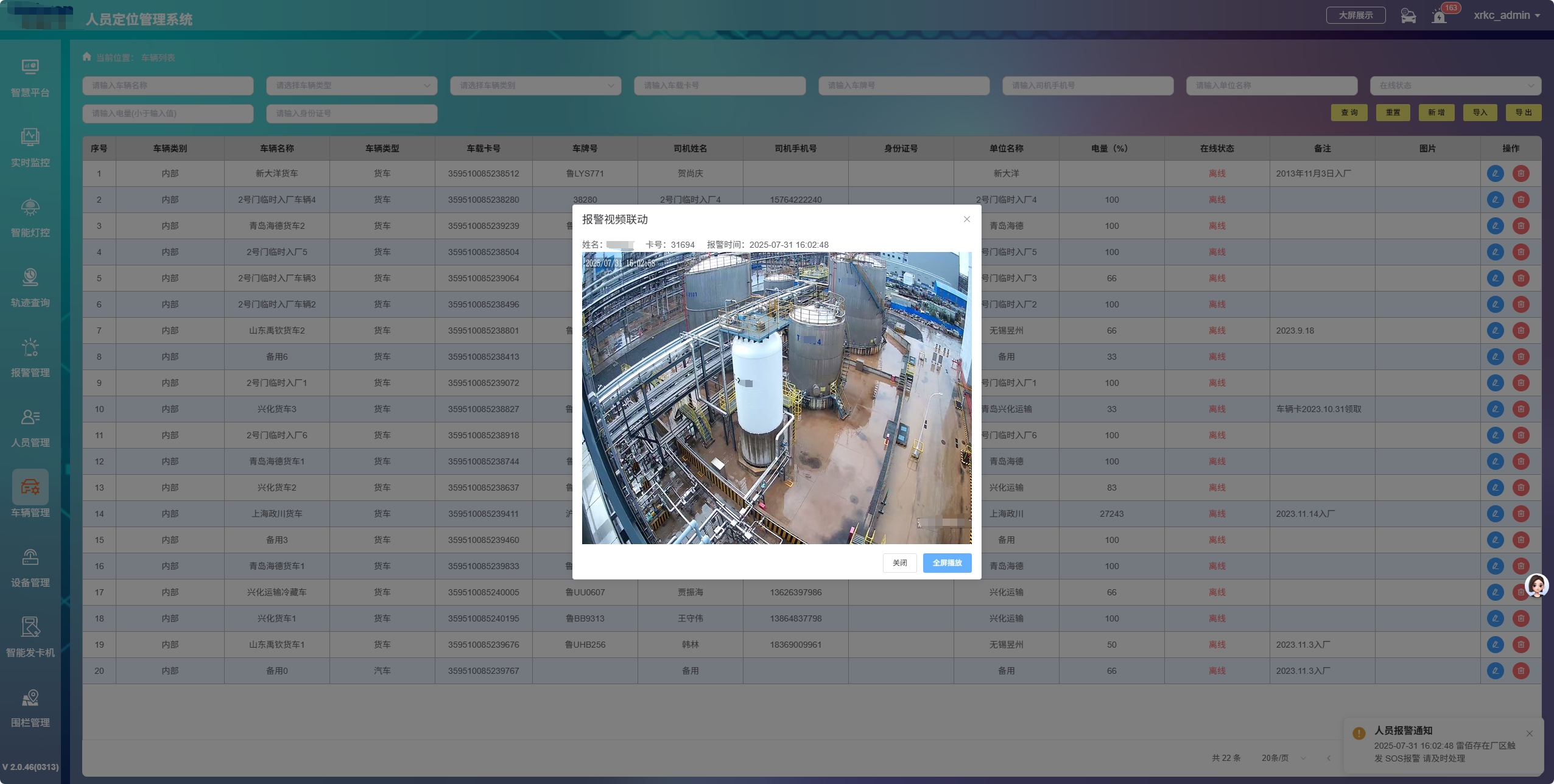 該系統(tǒng)可與現(xiàn)有的視頻監(jiān)控系統(tǒng)對接聯(lián)動,在實時跟蹤和歷史軌跡查詢時,能夠通過聯(lián)動區(qū)域內(nèi)的攝像頭獲取視頻畫面,管理者可以迅速查看現(xiàn)場情況,為應急處理提供更直觀的信息支持。