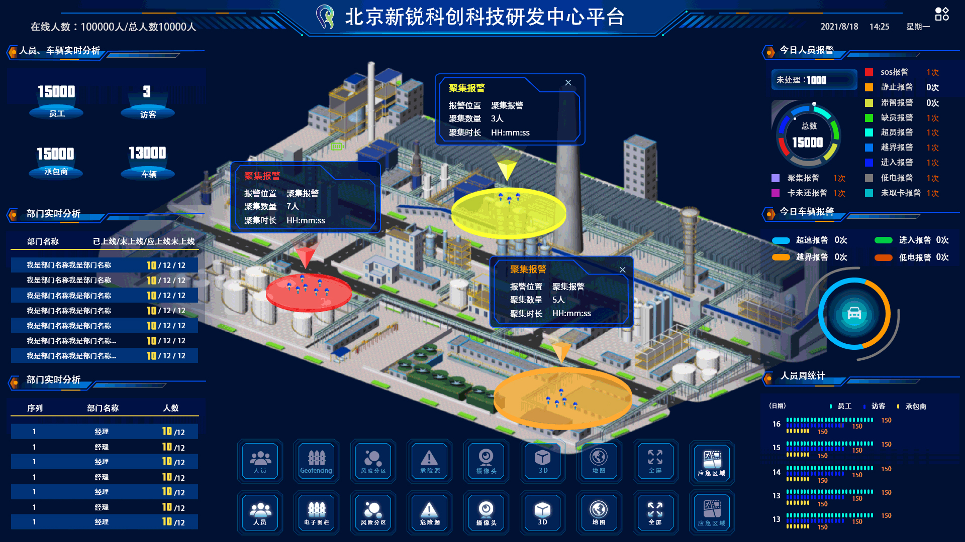大數(shù)據(jù)分析,系統(tǒng)能自動識別超員、缺員、脫崗、串崗、越界、滯留、靜止等異常行為,并啟動預(yù)警機(jī)制,通知相關(guān)人員并啟動應(yīng)急處理流程。
